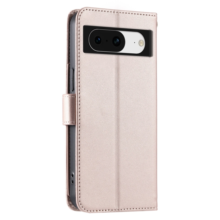 Funda de Cuero para Google Pixel 8A con Diseño Rombal y Hebilla de Anillo (Oro Rosa)