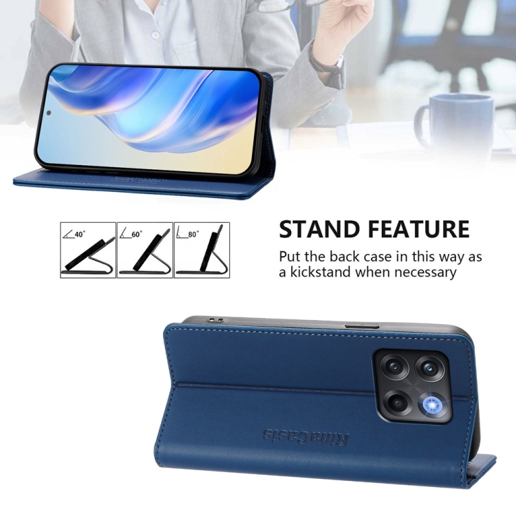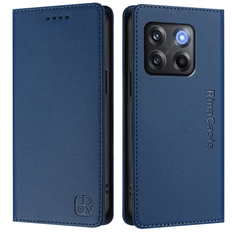 Funda de Cuero con Doble Pliegue y Succión Magnética para OnePlus Ace Pro y OnePlus 10T Global Rc01 (Azul Oscuro)