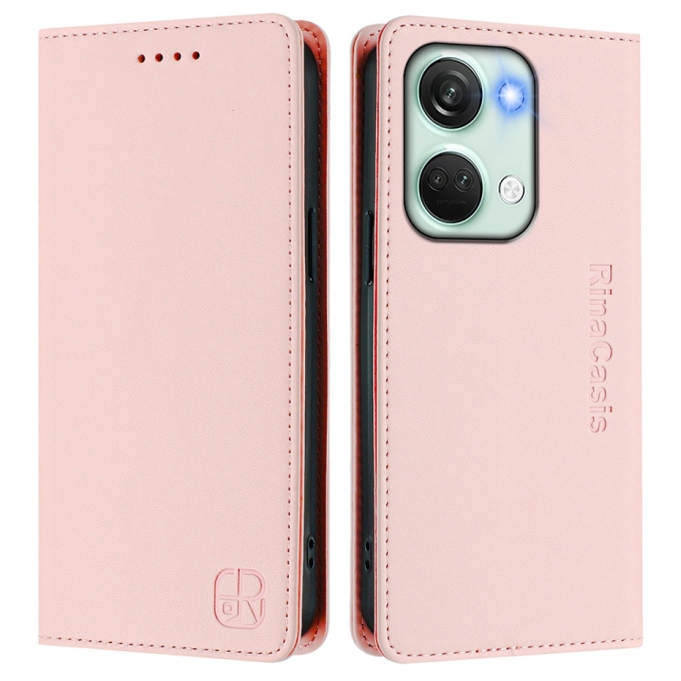 Funda de Cuero con Doble Pliegue y Succión Magnética para OnePlus Nord 3 y Ace 2V Rc01 (Rosa)