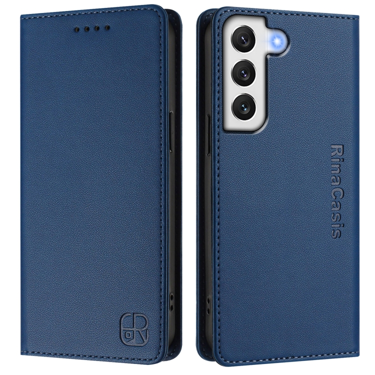 Funda Cuero Samsung Galaxy S22 5G Rc01 Doble Pliegue Succión Magnética (Azul Oscuro)
