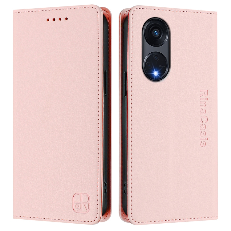 Funda de Cuero con Doble Pliegue y Succión Magnética Rfid para Oppo A1 Pro 5G / Reno8 T 5G Global Rc01 (Rosa)