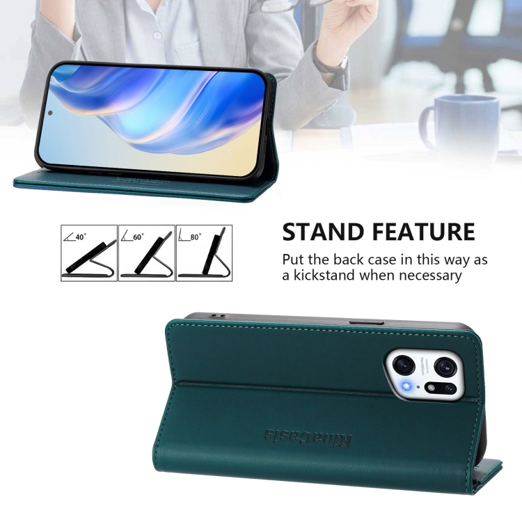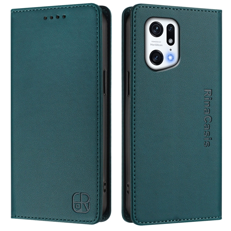 Funda de Cuero con Doble Pliegue y Succión Magnética Rfid para Oppo Find X5 Pro Rc01 (Verde Oscuro)