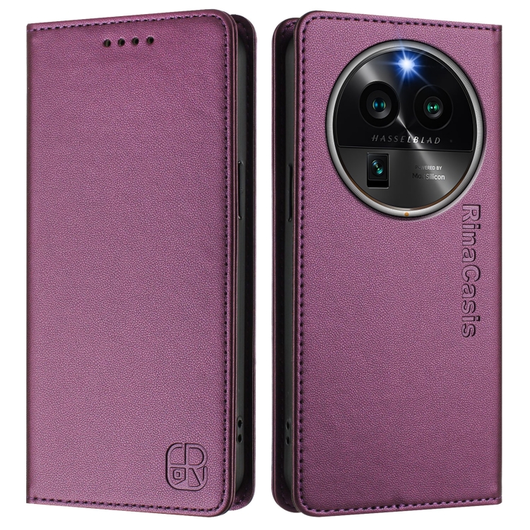 Funda de Cuero con Doble Pliegue y Succión Magnética Rfid para Oppo Find X6 Pro Rc01 (Violeta)