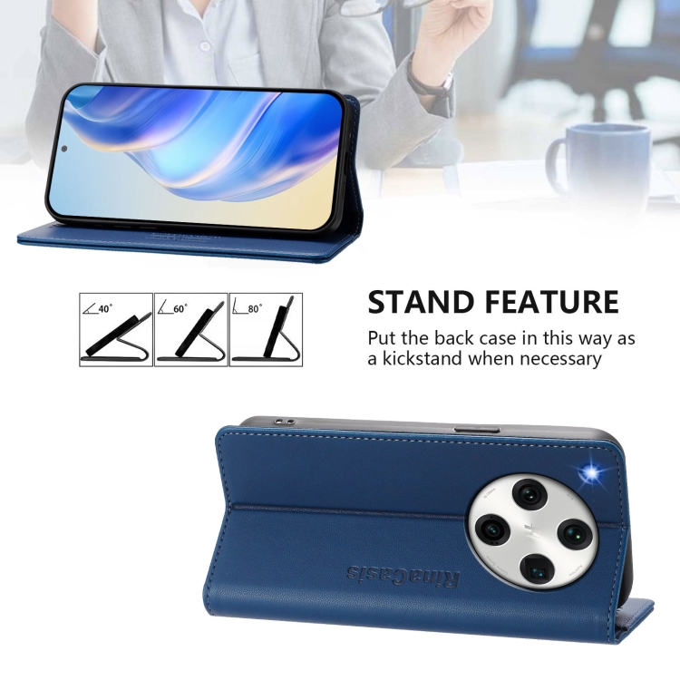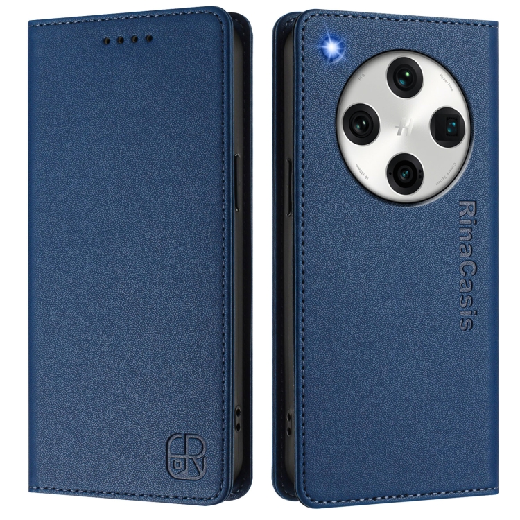 Funda de Cuero con Doble Pliegue y Succión Magnética Rfid para Oppo Find X8 Pro Rc01 (Azul Oscuro)