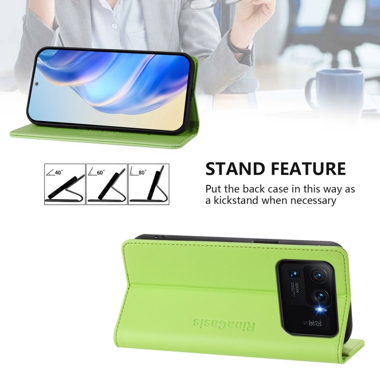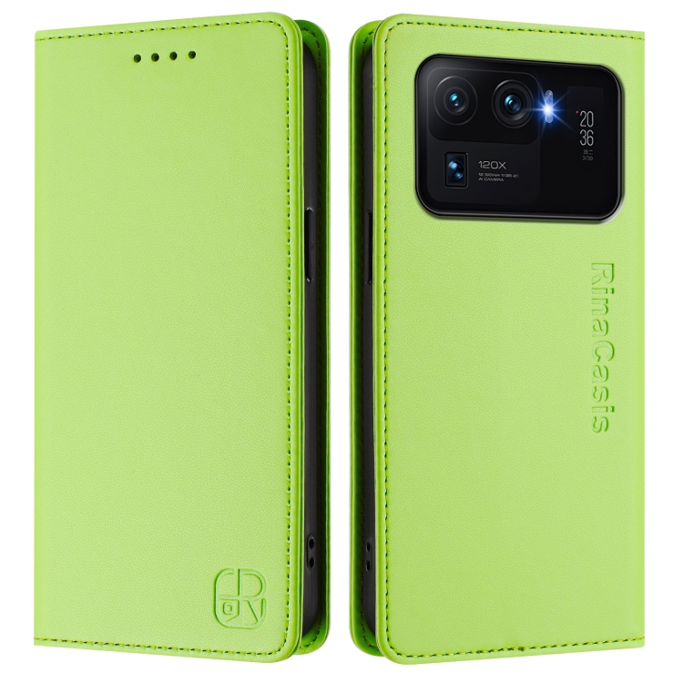 Funda de Cuero con Doble Pliegue y Succión Magnética para Xiaomi Mi 11 Ultra Rc01 (Verde Hierba)