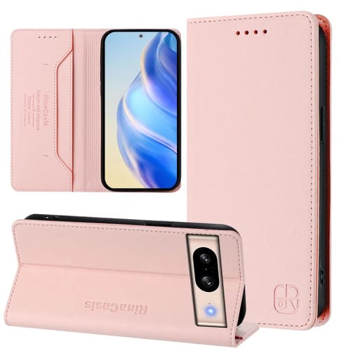 Funda de Cuero con Doble Pliegue y Succión Magnética Rfid para Google Pixel 8 Rc01 (Rosa)