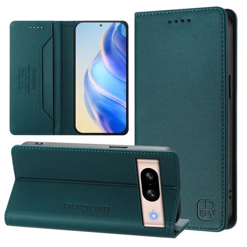 Funda de Cuero para Google Pixel 8 Rc01 con Doble Pliegue y Succión Magnética Rfid (Verde Oscuro)