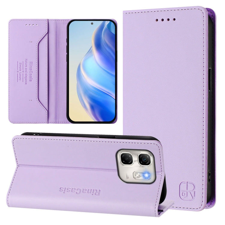 Funda de Cuero con Doble Pliegue y Succión Magnética Rfid para Infinix Hot 50I 5G / Smart 9 4G Rc01 (Morado Claro)