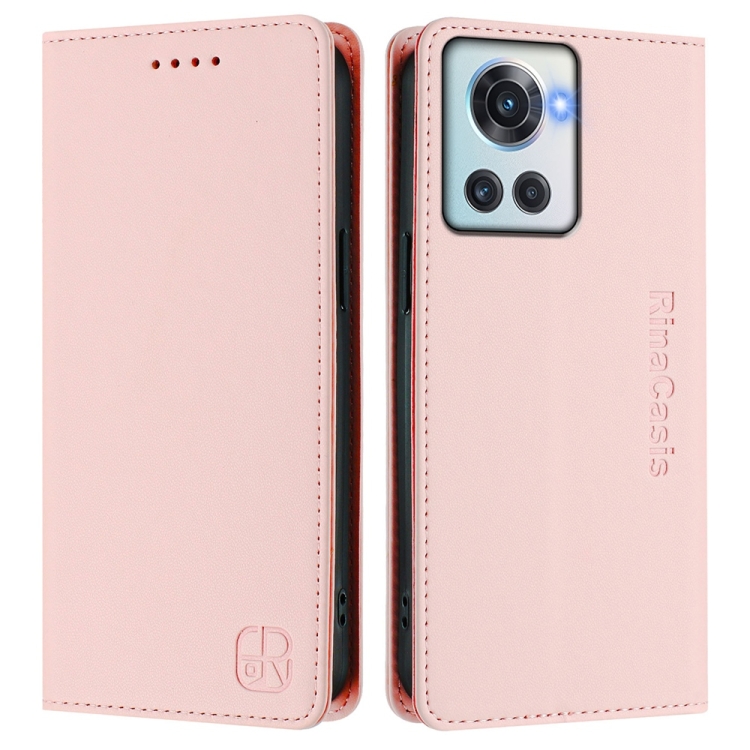 Funda de Cuero con Doble Pliegue y Succión Magnética Rfid para OnePlus 10R/OnePlus Ace Rc01 (Rosa)