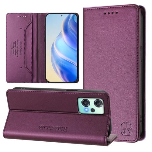 Funda de Cuero con Doble Pliegue y Succión Magnética Rfid para OnePlus Nord Ce 2 Lite 5G/Nord 2 Lite Rc01 (Violeta)