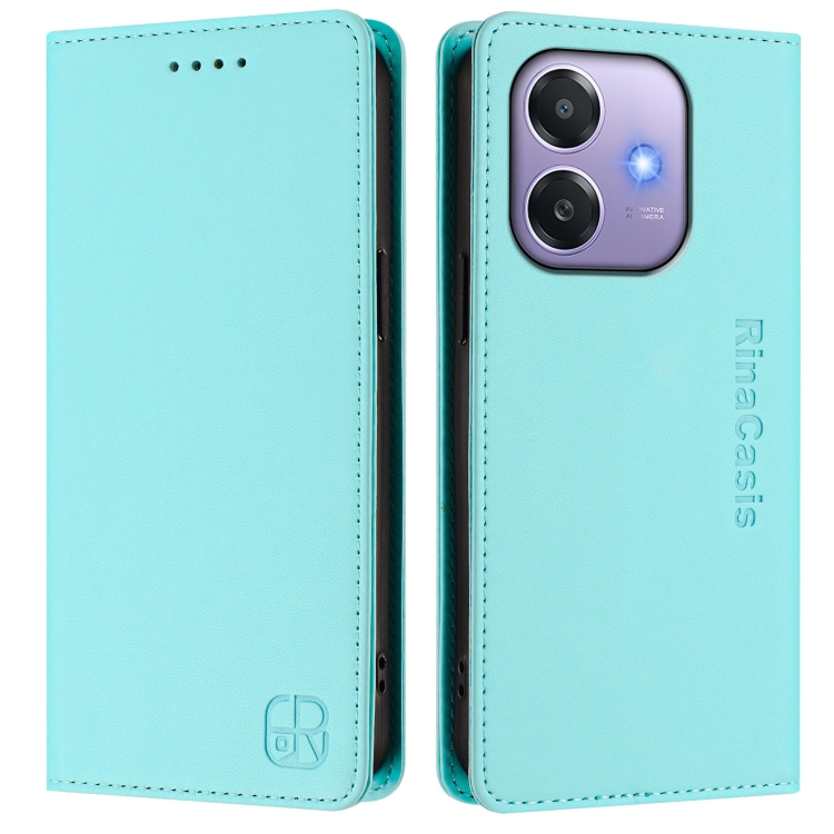 Funda de Cuero con Doble Pliegue y Cierre Magnético Rfid para Oppo A3X 5G / 4G / A3 5G / 4G Rc01 (Verde Menta)
