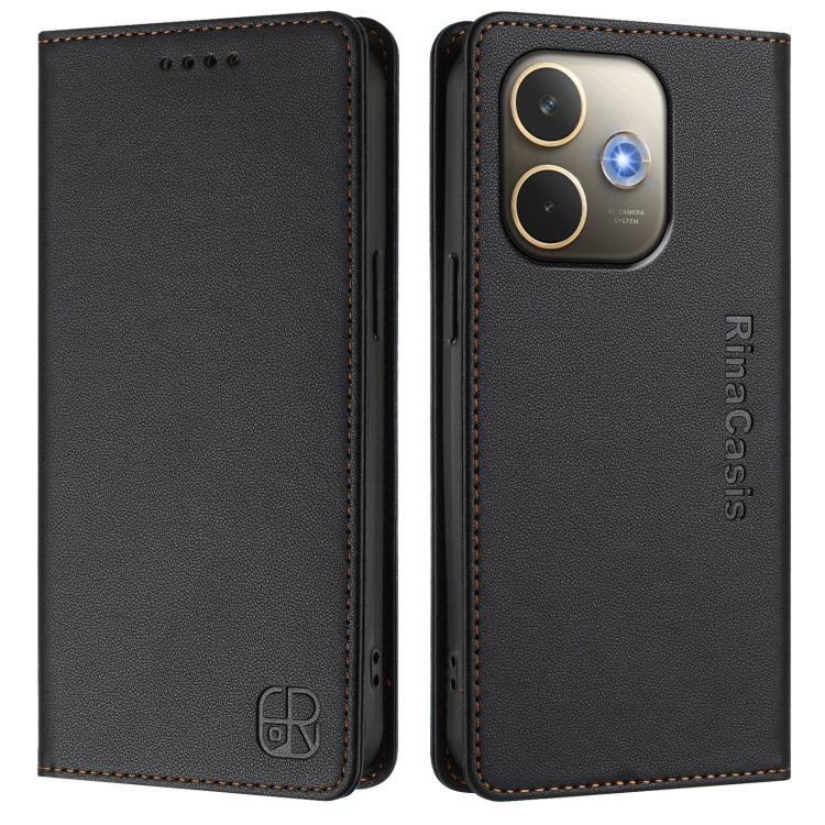 Funda de Cuero con Doble Pliegue y Succión Magnética Rfid para Oppo A5 Pro 5G Global Rc01 (Negra)