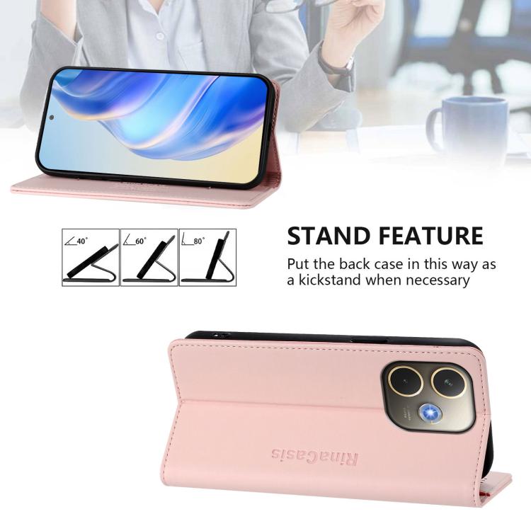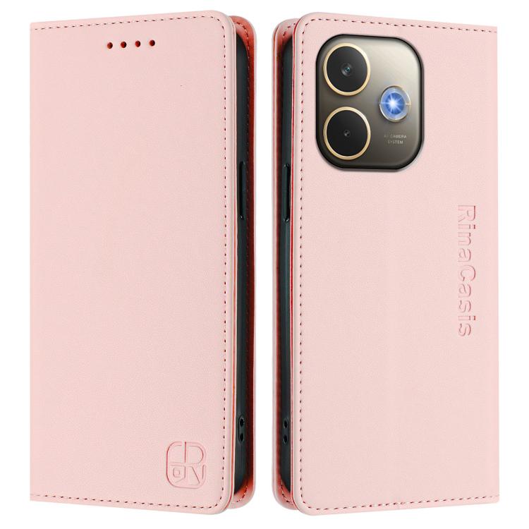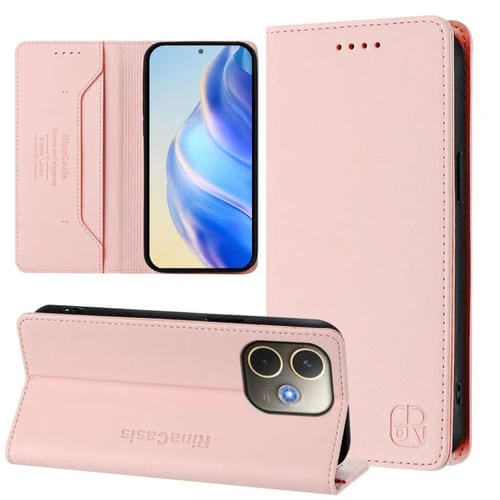 Funda de Cuero con Doble Pliegue y Succión Magnética Rfid para Oppo A5 Pro 5G Global Rc01 (Rosa)