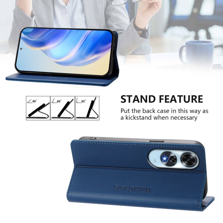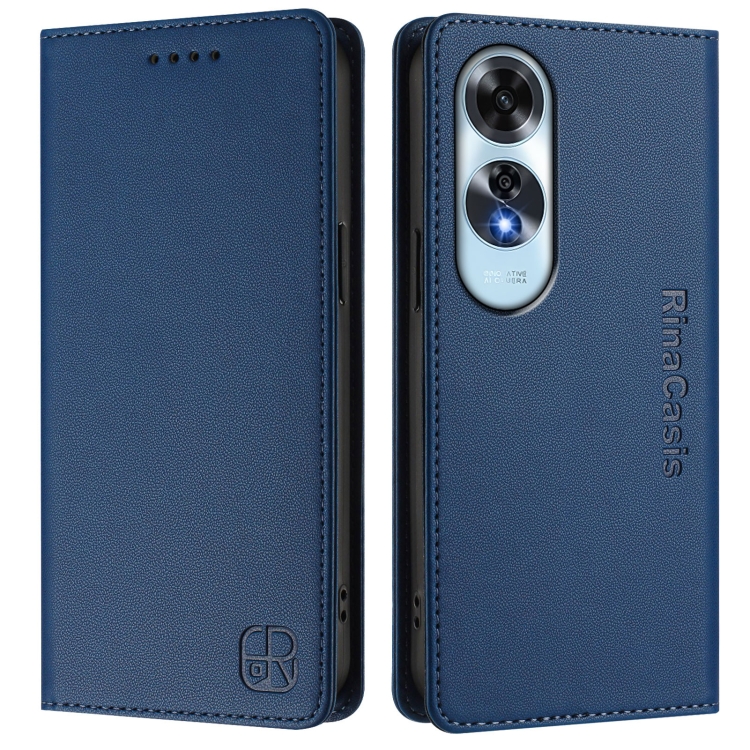 Funda de Cuero con Doble Pliegue y Succión Magnética Rfid para Oppo A60 4G Global Rc01 (Azul Oscuro)