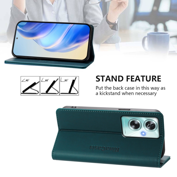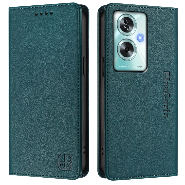 Funda de Cuero con Doble Pliegue y Succión Magnética Rfid para Oppo A79 5G Global Rc01 (Verde Oscuro)