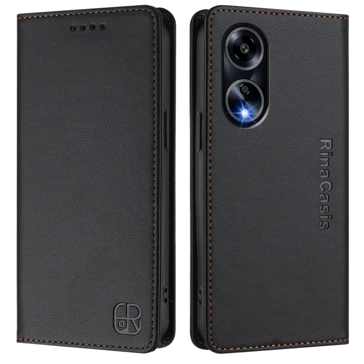 Funda de Cuero con Doble Pliegue y Cierre Magnético Rfid para Oppo A98 5G / F23 5G India Rc01 (Negra)