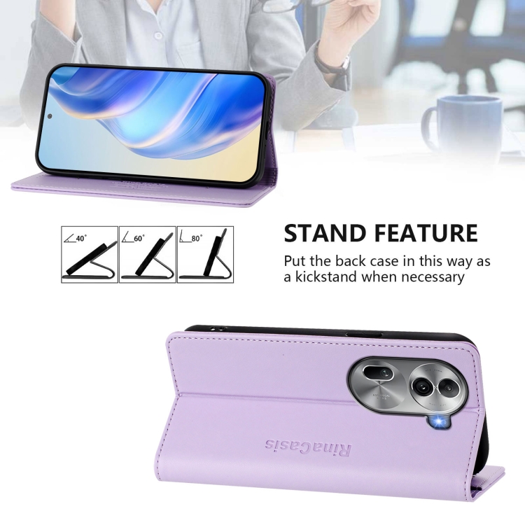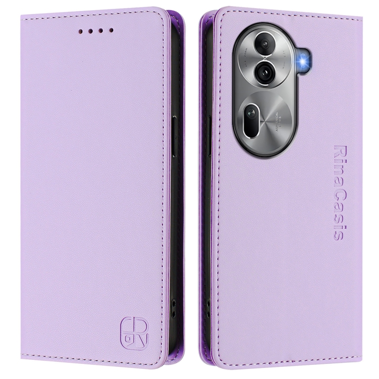 Funda de Cuero con Doble Pliegue y Cierre Magnético Rfid para Oppo Reno11 Pro 5G Global Rc01 (Morado Claro)