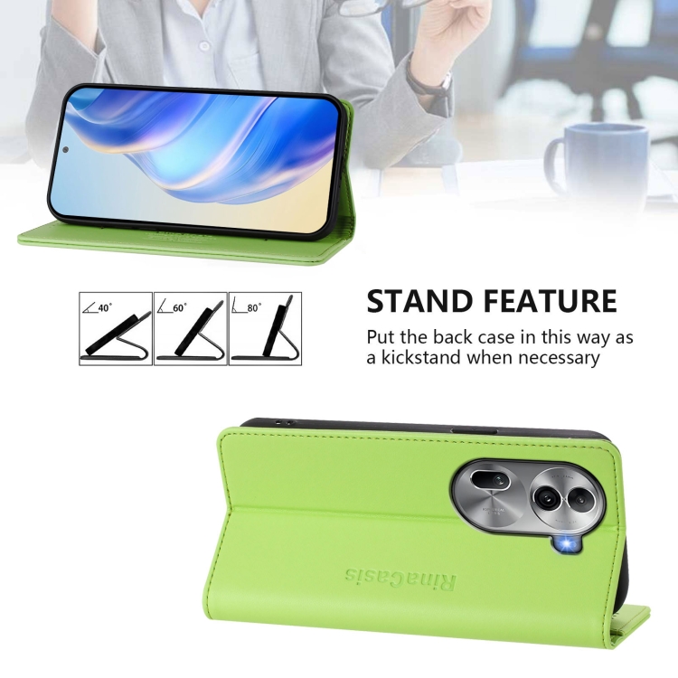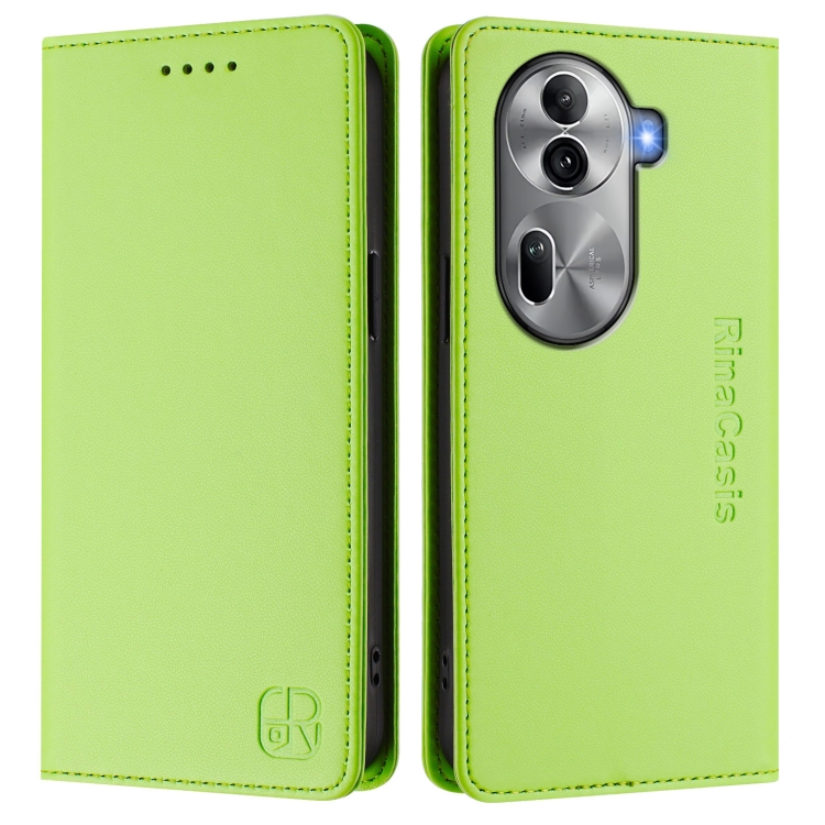 Funda de Cuero con Doble Pliegue y Succión Magnética Rfid para Oppo Reno11 Pro 5G Global Rc01 (Verde Hierba)