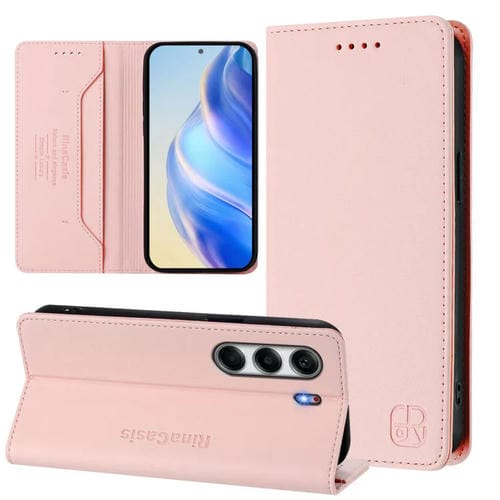 Funda de Cuero con Doble Pliegue y Succión Magnética RFID para Tecno Camon 40 4G Rc01 (Rosa)