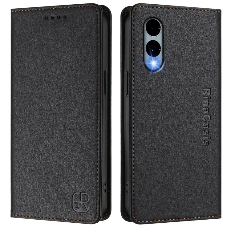 Funda de Cuero para Teléfono Fujitsu Arrows We2 F-52E Rc01 con Doble Pliegue y Succión Magnética Rfid (Negra)
