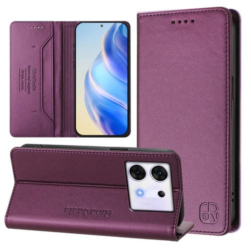 Funda de Cuero con Doble Pliegue y Succión Magnética Rfid para Infinix Zero 30 5G Rc01 (Violeta)