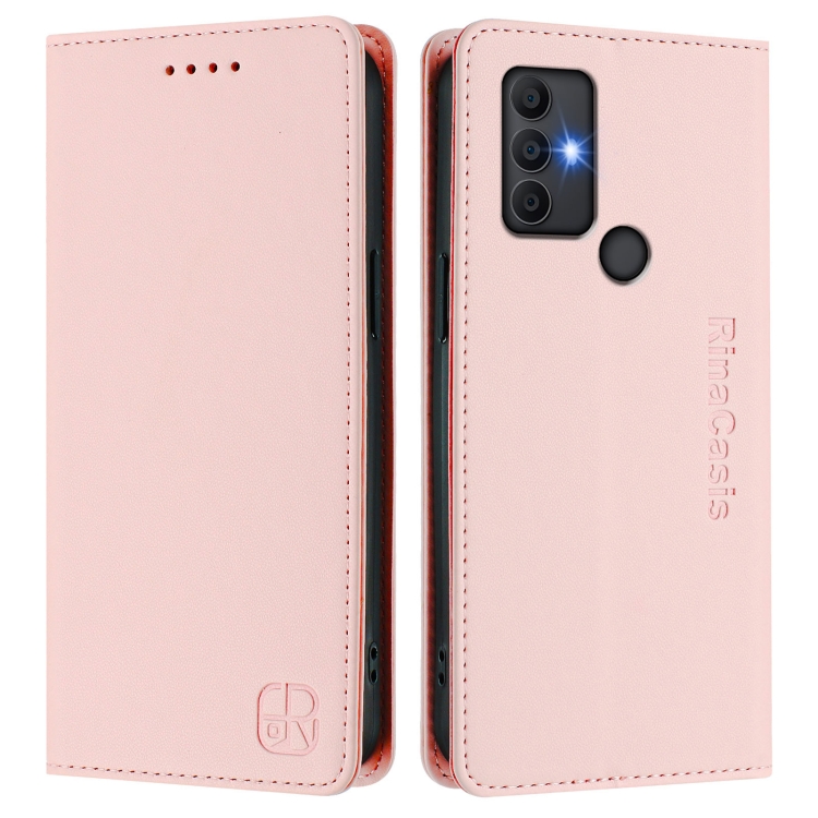 Funda de Cuero para Teléfono TCL 305/306 Rc01 con Doble Pliegue y Succión Magnética Rfid (Rosa)