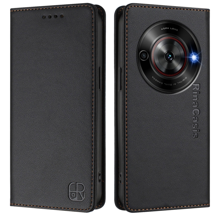Funda de Cuero con Doble Pliegue y Succión Magnética RFID para ZTE Blade A75 5G/Nubia Focus 5G Rc01 (Negro)