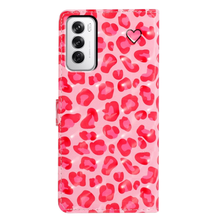 Funda de Cuero con Estampado 3D para Teléfono Oppo Reno12 Global (Estampado de Leopardo Rosa)