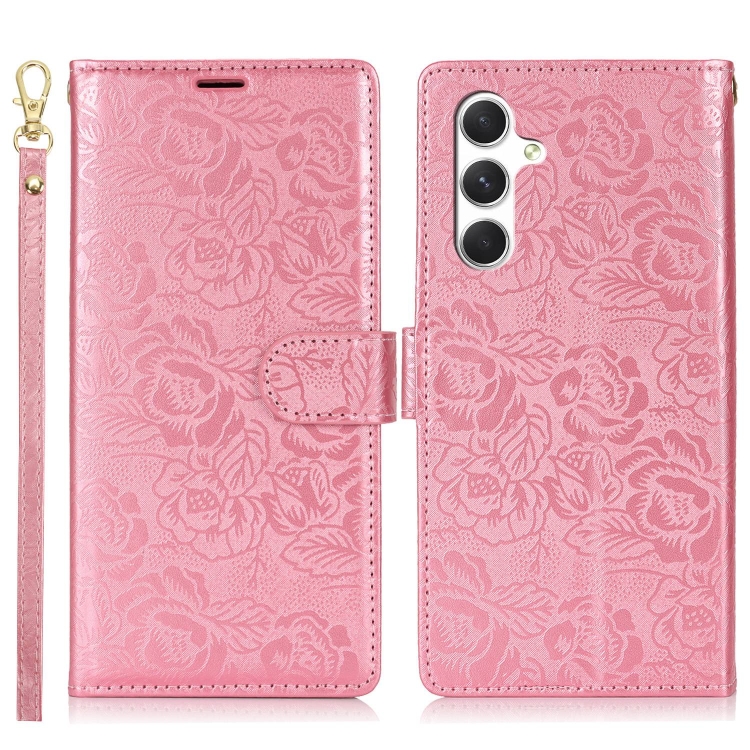 Funda Cuero Samsung Galaxy A25 5G Estampado Flores Peonía (Rosa)