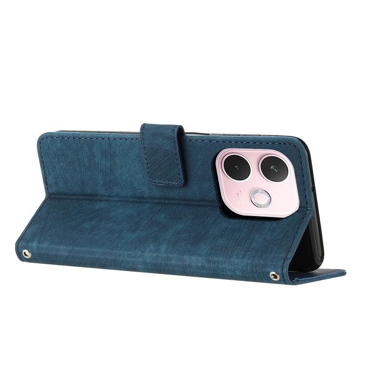 Funda de Cuero con Estampado de Rayas y Cordón Largo para Oppo A5 Pro 5G (Azul)