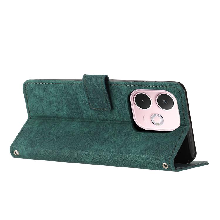 Funda de Cuero con Estampado de Rayas y Cordón Largo para Oppo A5 Pro 5G (Verde)