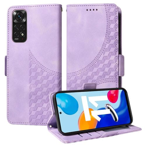Funda de Cuero con Estampado de Rombos y Estrellas para Redmi Note 11 4G/11S (Morado)