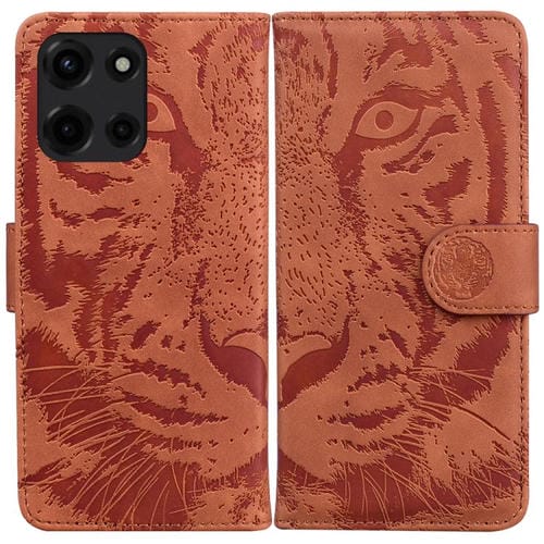 Funda de Cuero con Estampado de Tigre para Motorola Moto G 5G (2025) (Marrón)