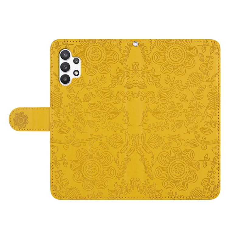 Funda Cuero Samsung Galaxy A13 4G A04 A04S Estampado Floral En Relieve (Amarillo)