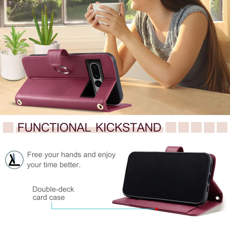 Funda de Cuero con Forma de Rombo y Hebilla de Anillo para Google Pixel 7 Pro (Roja)