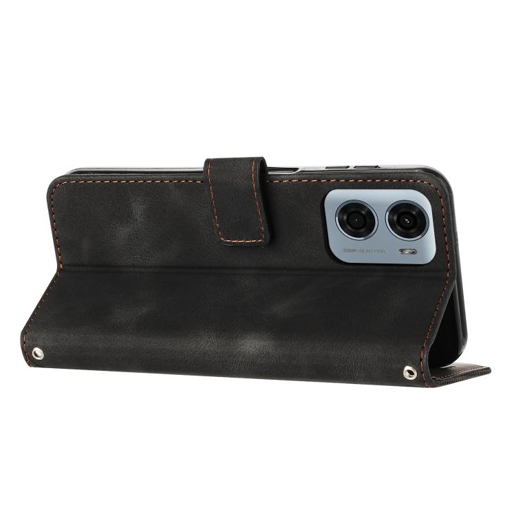 Funda de Cuero Triangular para Motorola Moto G05 Dream con Cordón (Negro)