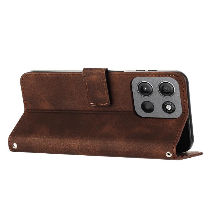 Funda de Cuero Triangular para Motorola Moto G15 Dream con Cordón (Marrón)