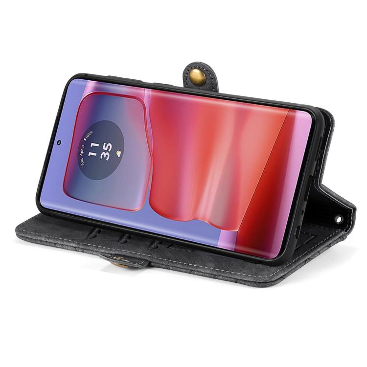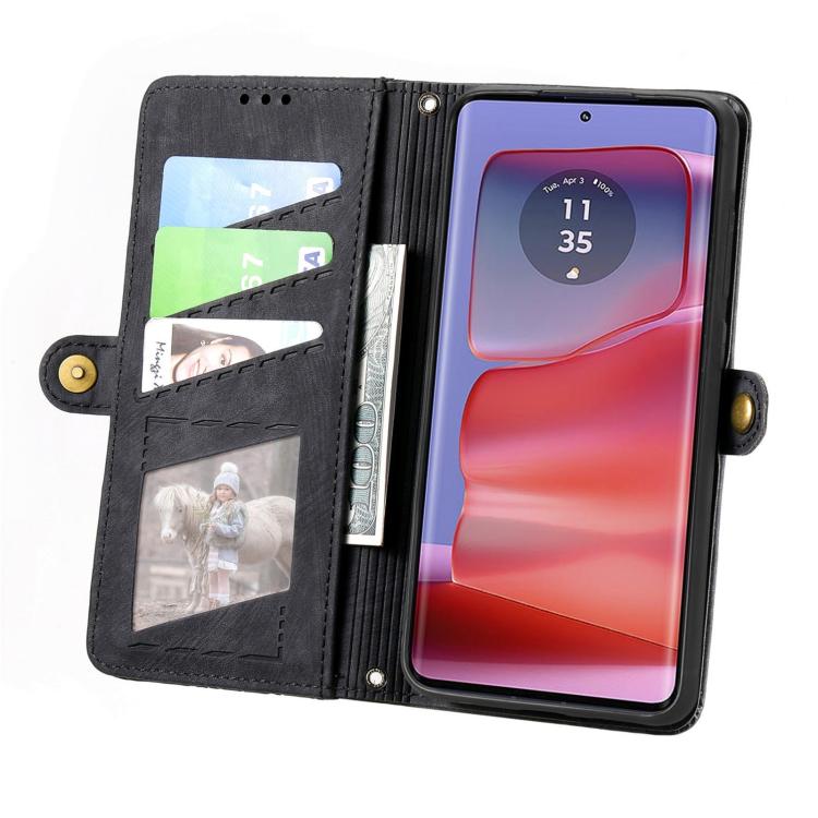 Funda de Cuero con Hebilla Lateral y Cremallera para Motorola Moto G75 5G (Negro)