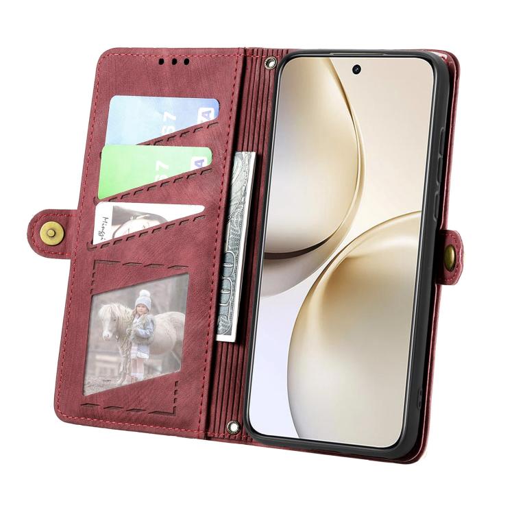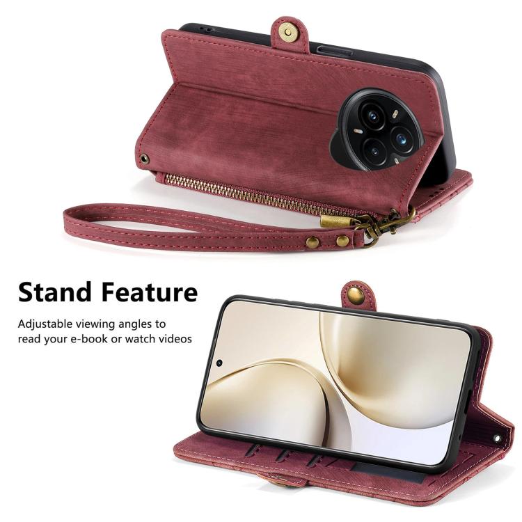 Funda de Cuero con Hebilla Lateral y Cremallera Geométrica para Realme 14 Pro+ (Roja)