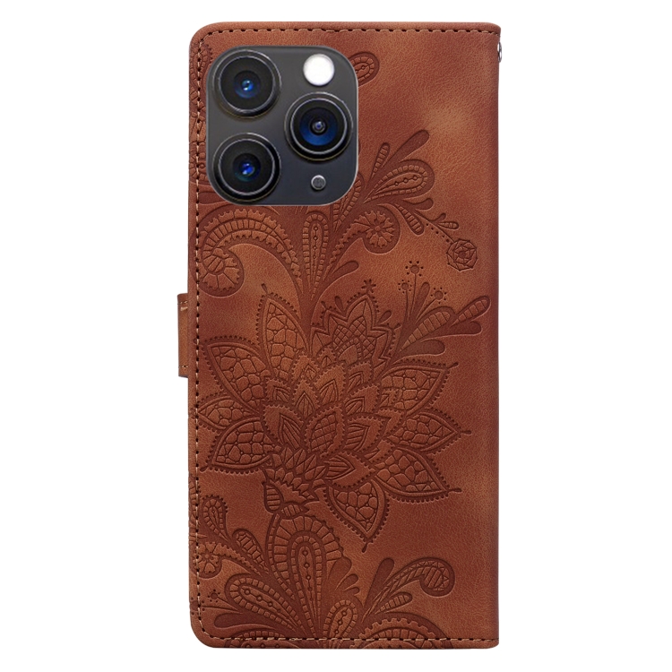 Funda de Cuero con Hebilla Magnética y Diseño Floral En Relieve para iPhone 11 Pro Max (Marrón)