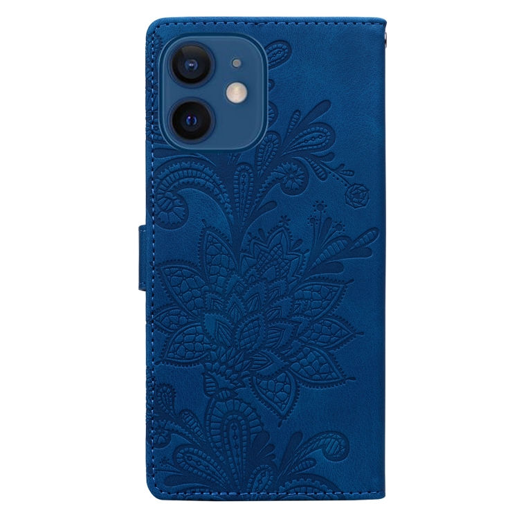 Funda de Cuero con Hebilla Magnética y Diseño Floral En Relieve para iPhone 12 (Azul)