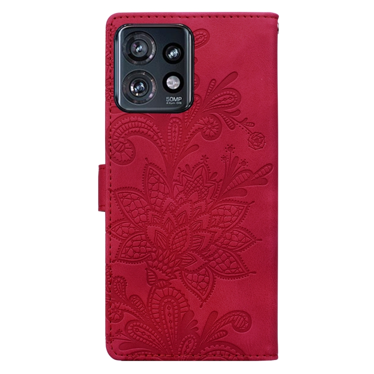 Funda de Cuero con Hebilla Magnética y Diseño Floral en Relieve para Motorola Edge+ (2023) (Rojo)