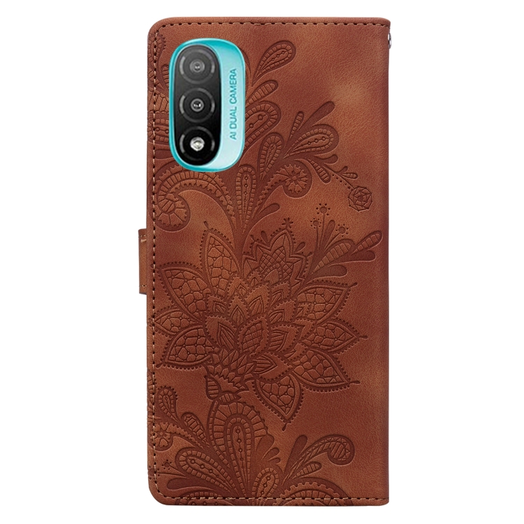 Funda de Cuero para Motorola Moto E20 con Hebilla Magnética y Diseño Floral (Marrón)