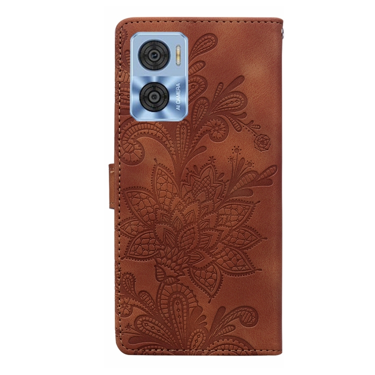 Funda de Cuero con Hebilla Magnética y Diseño Floral para Motorola Moto E22/E22I (Marrón)