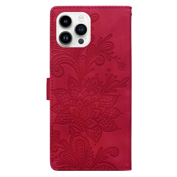 Funda de Cuero con Hebilla Magnética y Encaje Floral En Relieve para iPhone 15 Pro (Rojo)