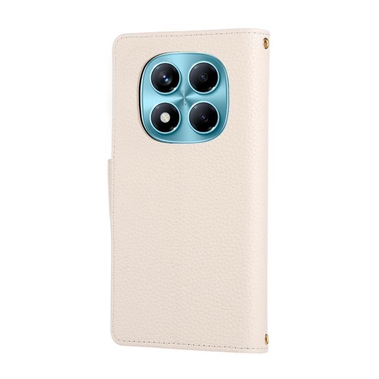 Funda de cuero con hebilla redonda y cremallera para Redmi Note 14 Pro 4G, con correa cruzada (blanca)