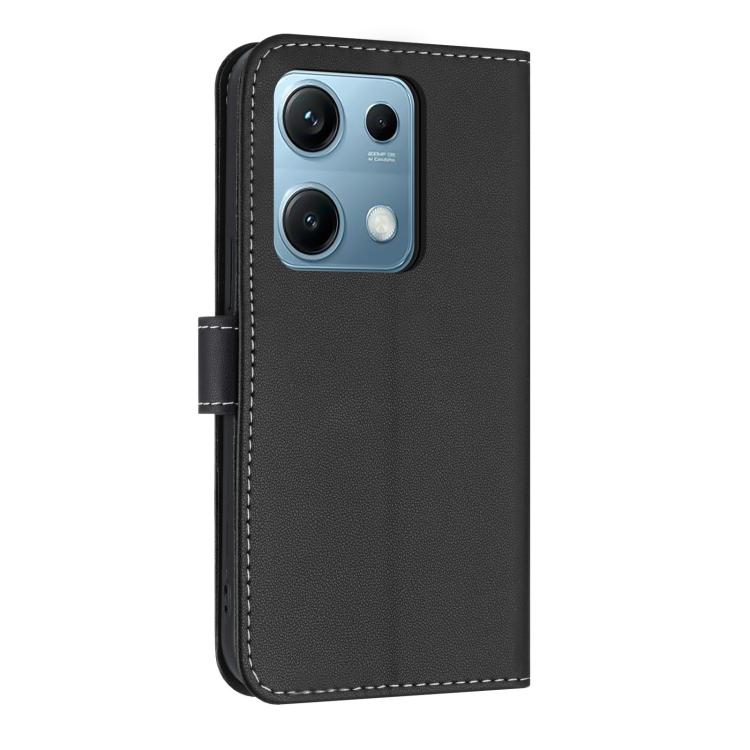 Funda de cuero con lazo metálico y correa de mano para Redmi Note 14S 4G (negra)