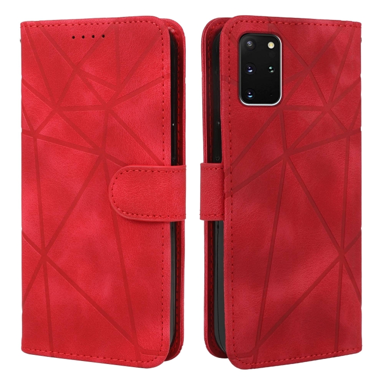 Funda Cuero Samsung Galaxy S20+ Líneas Geométricas Tacto Sedoso (Rojo)