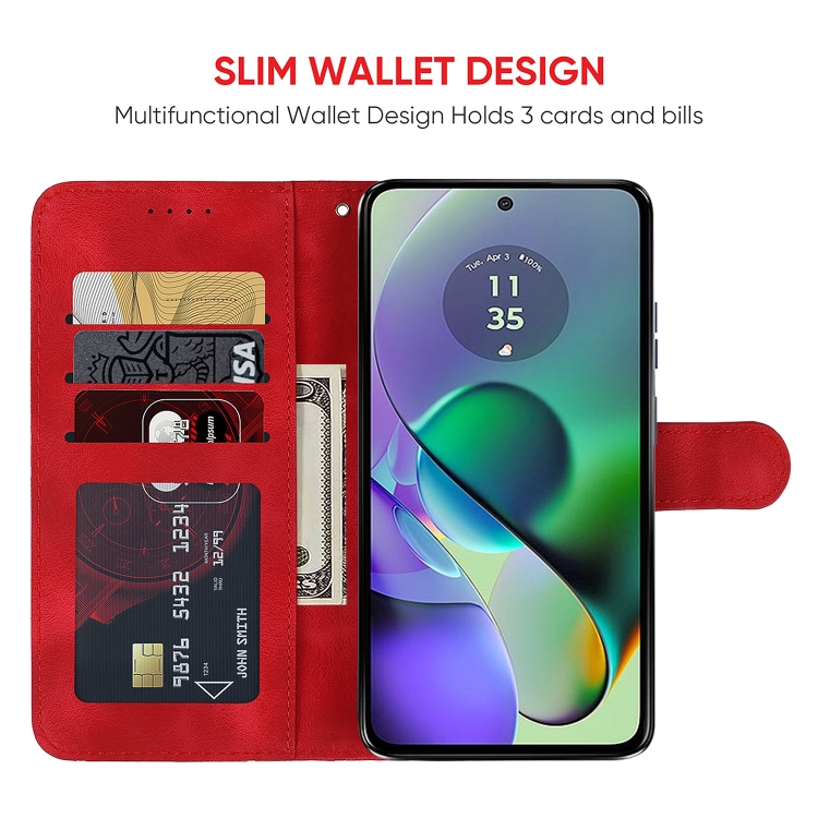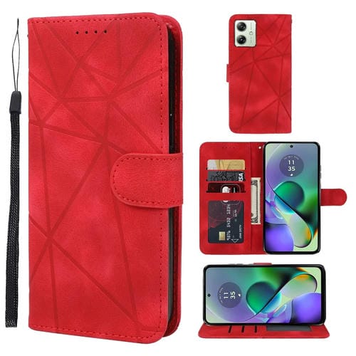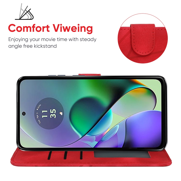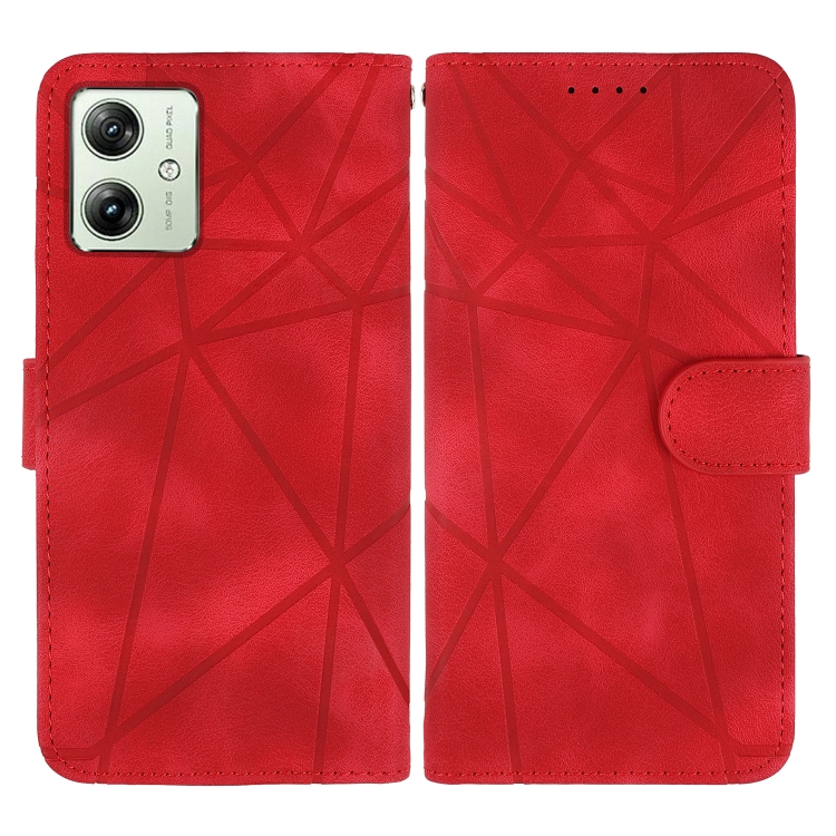 Funda de Cuero para Motorola Moto G54 con Líneas Geométricas y Tacto Suave (Rojo)