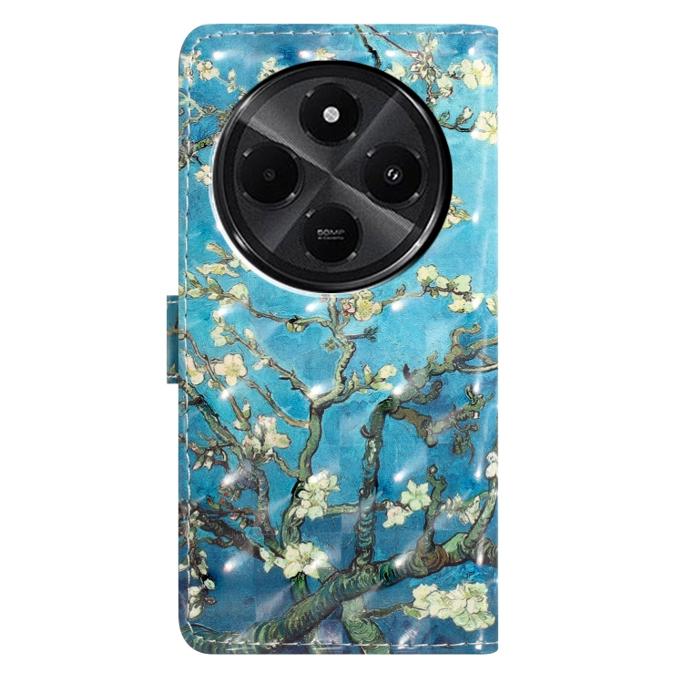 Funda de Cuero con Patrón 3D para Redmi A4 5G (Flor de Albaricoque con Base Azul)